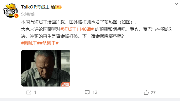 我们知道本周即将更新海贼王最新一期的漫画1148话,目前漫画提示情报也已经更新了,一个脸色凝重的老人画面!