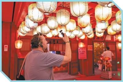 近日,中外媒体联合采访团成员在陕西省西安市长安十二时辰主题街区内拍摄采访。 本报记者 张武军摄